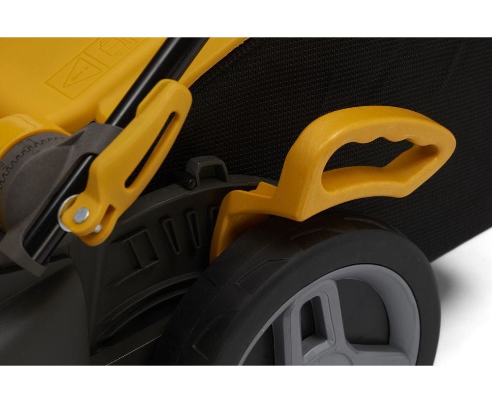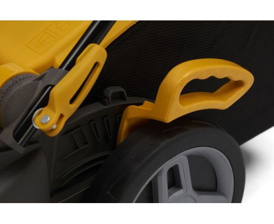 Электрическая механическая газонокосилка с двигателем мощностью 1600 Вт и травосборником объемом 40 литров с функциями заднего выброса и мульчирования.