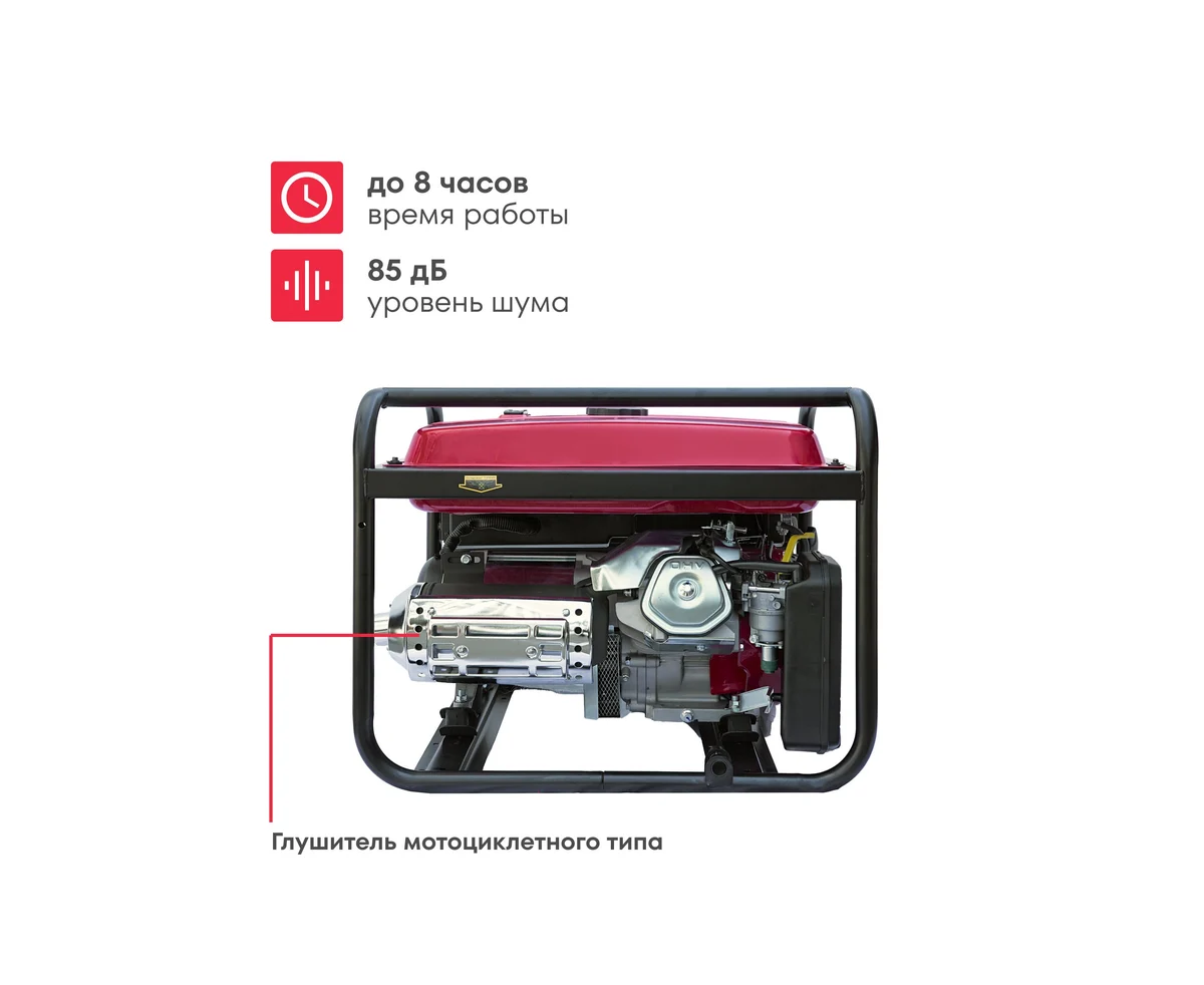 На одном топливном баке генератор способен проработать до 8 часов без остановки.