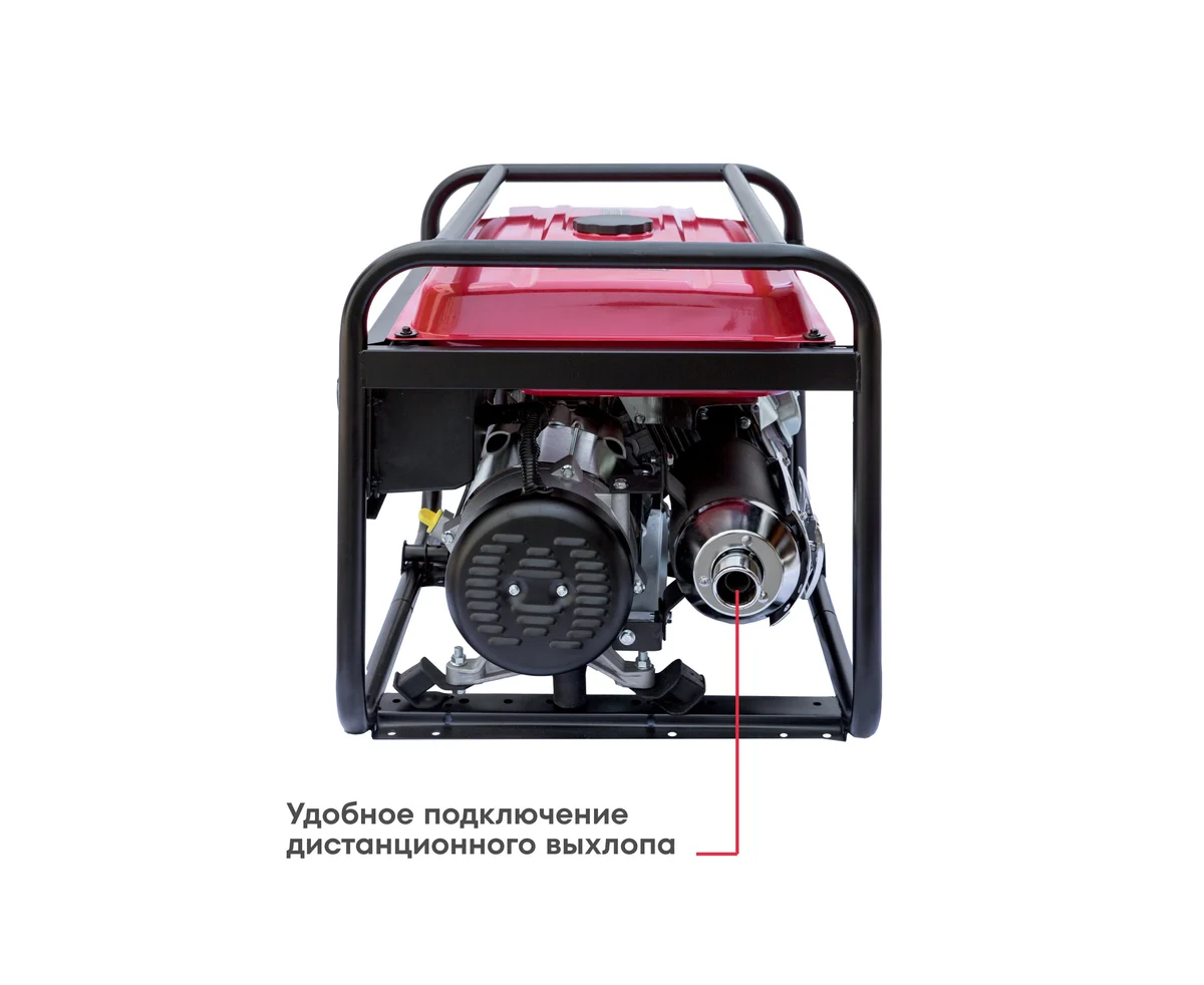 Две розетки 16А и одна силовая розетка 32А позволяют подключать несколько электроприборов одновременно, а также устанавливать стационарно в качестве резервного источника питания в доме или коттедже. Клеммы полной мощности 230 В позволяют задействовать всю мощность генератора в любых условиях, даже без использования штепсельной вилки: достаточно оголить концы проводов, накрутить их на клеммы и зажать защитными колпачками.