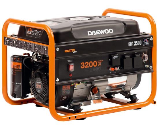 Daewoo GDA 3500 задействует в работе стабилизацию напряжения AVR. Корпус прибора содержит две розетки 220В/16А. Оборудование с емкостью топливного бака 18 л предусматривает ручной запуск. Во включенном состоянии уровень шума электрогенератора соответствует 69 дБ.Он весит 37 кг и содержит выступающие элементы, обеспечивающие комфортную транспортировку аппарата.