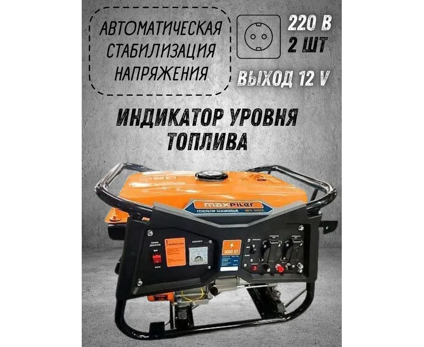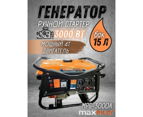 Генератор бензиновый Maxpiler MPG-3000A (3/2,8кВт,7л.с., алюм,розет2*220В и12В, цифр дисп, AVR,защ перегруз)