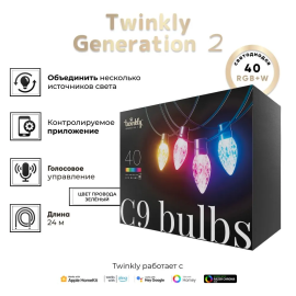 Гирлянда Twinkly C9 Lights, 40 RGB диодов, зеленый провод, BT+WiFi, Gen II, IP44