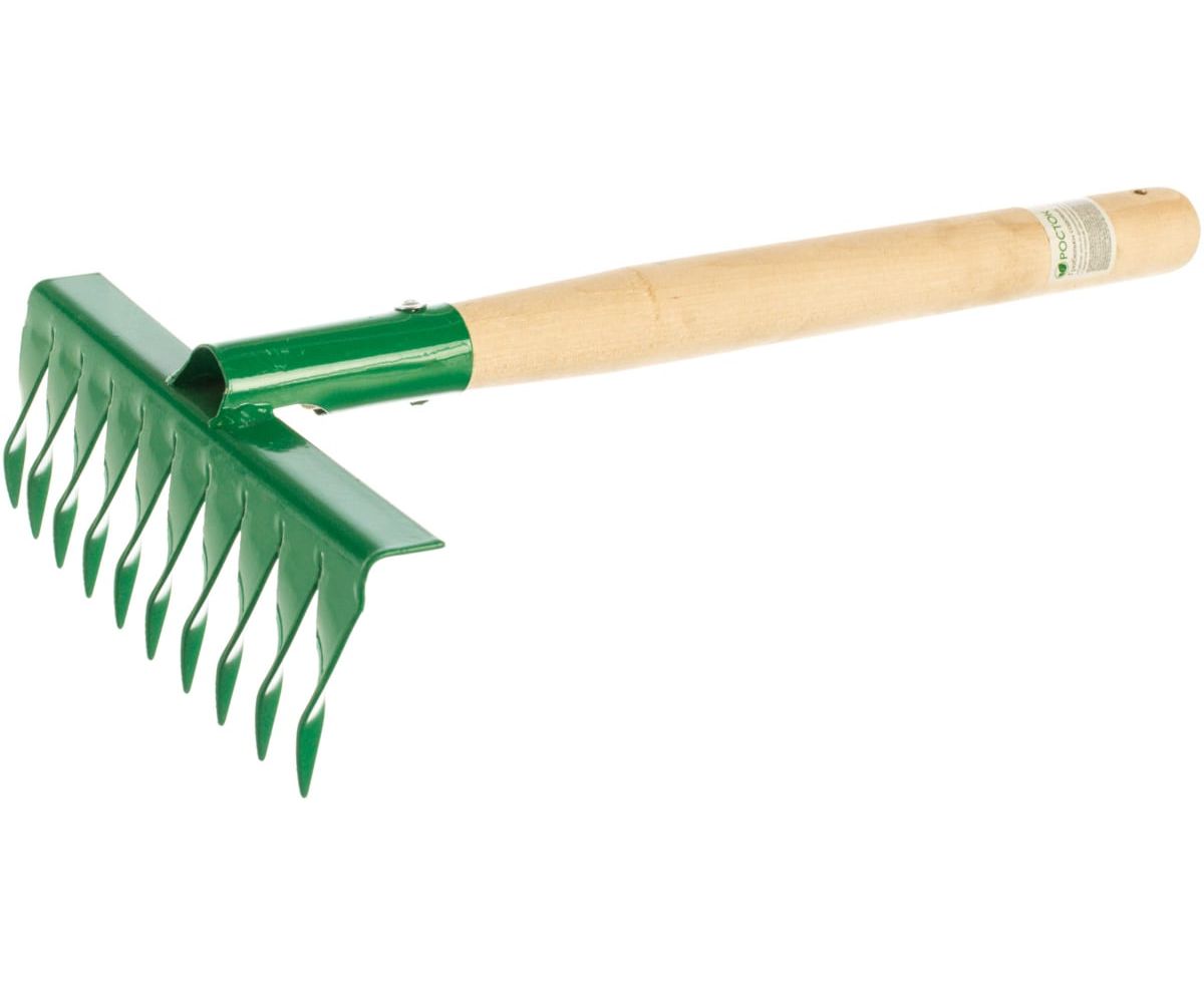 Садовые грабельки просты и надежны в эксплуатации. Рабочая часть выполнена из стали с защитным покрытием, что обеспечивает долгий срок службы. Деревянная рукоять удобно лежит в руке.