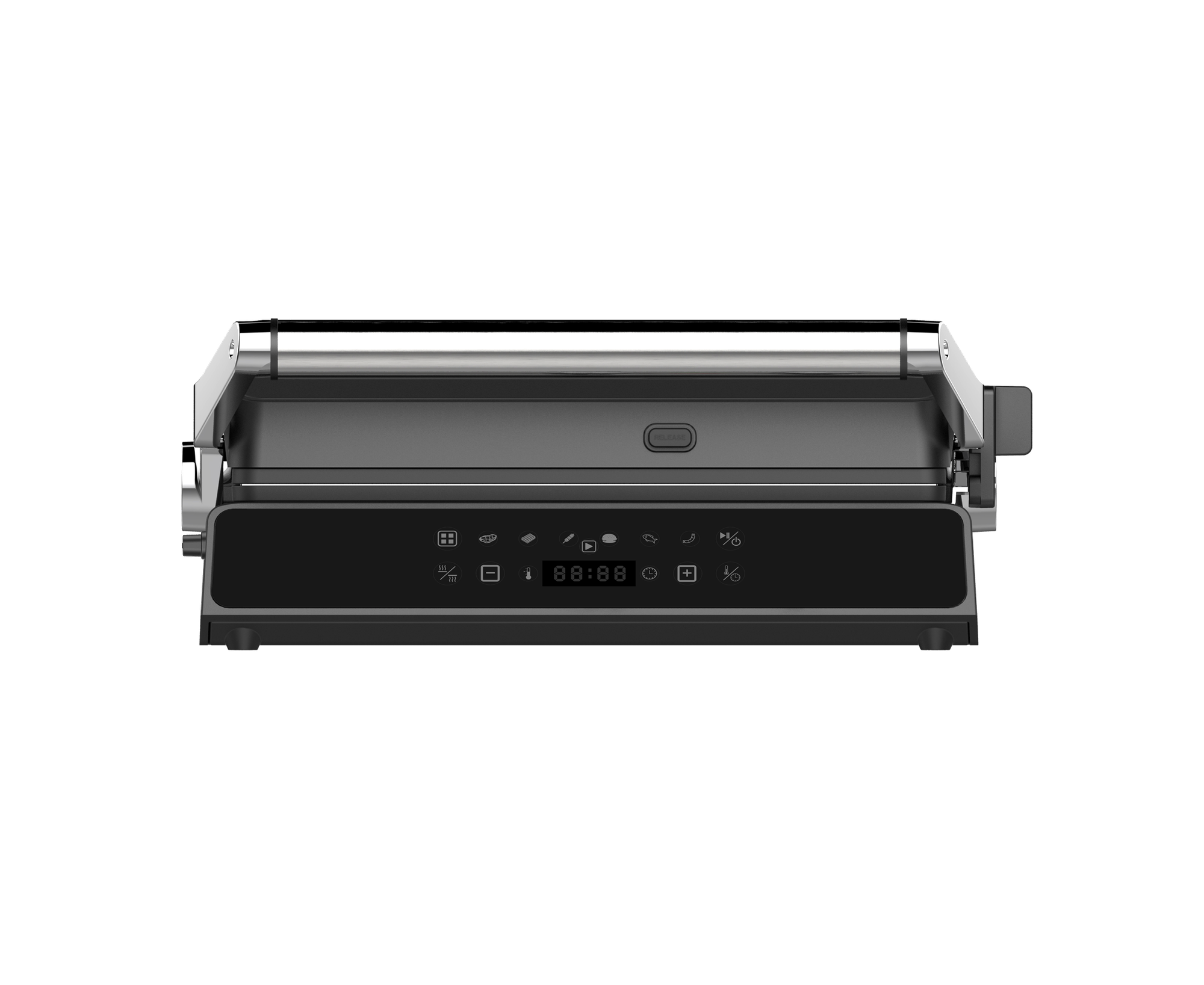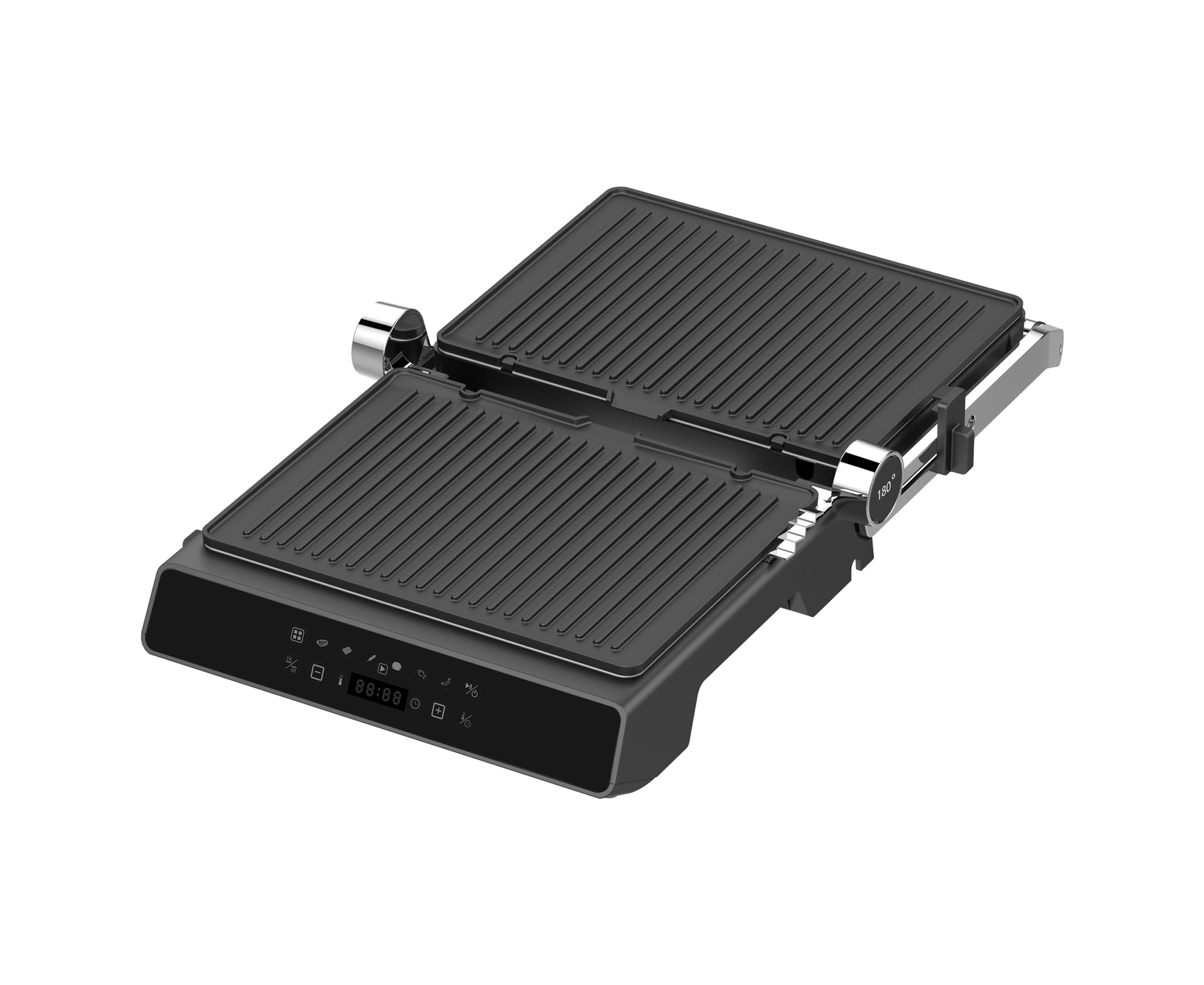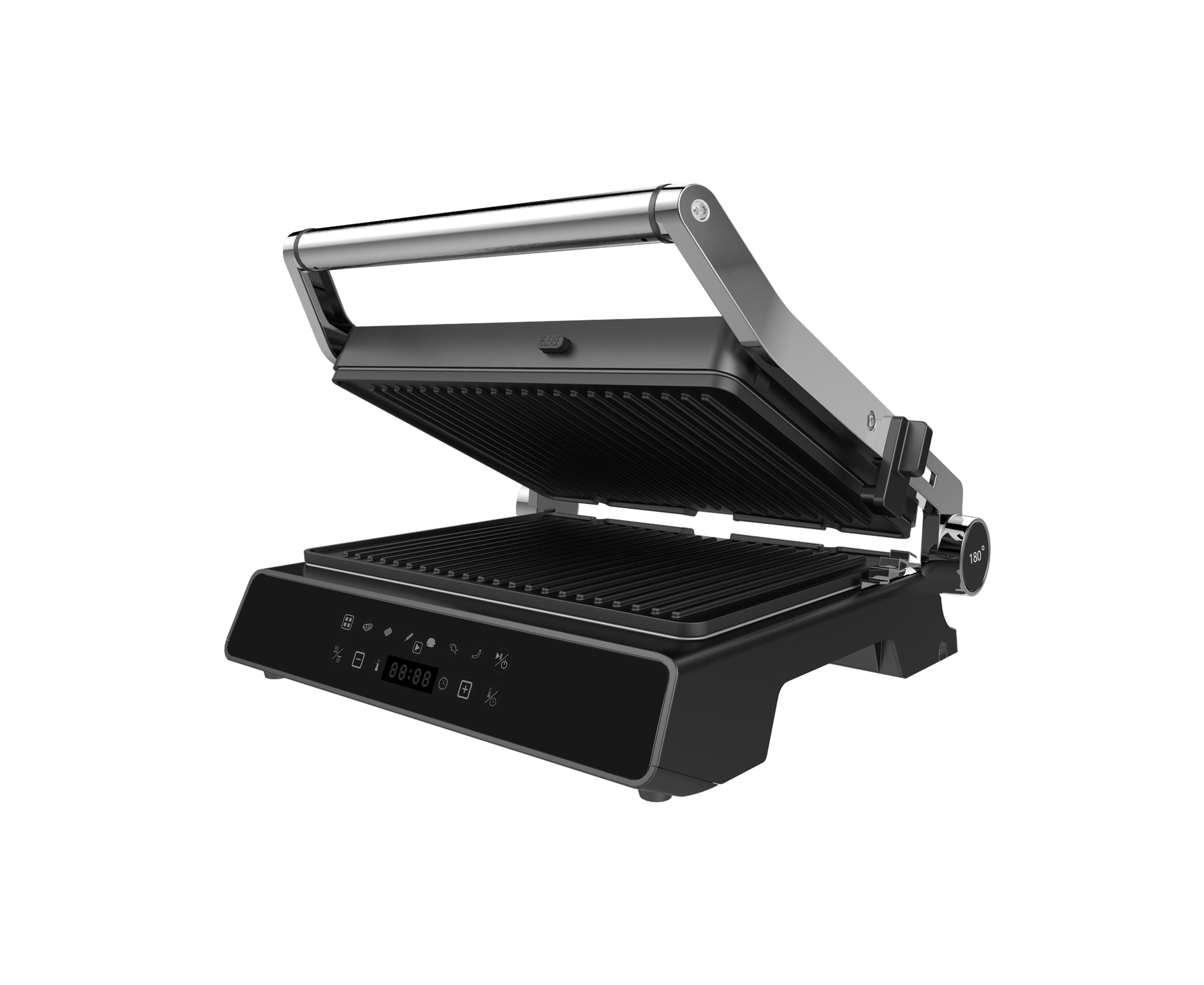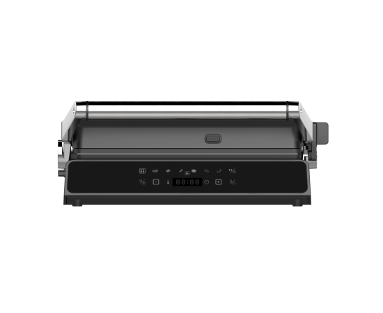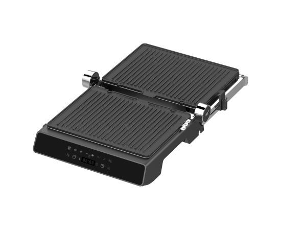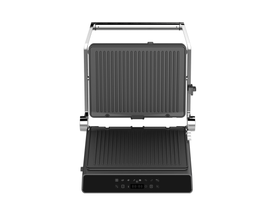 антипригарное покрытие, поддон для сбора жира, регулировка высоты верхней панели, съемные пластины