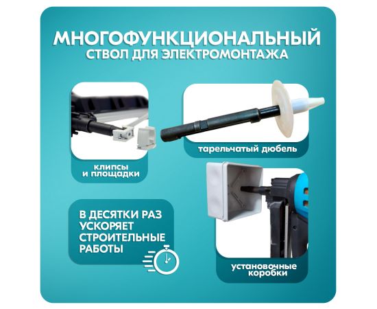 Основной особенностью этого инструмента является отсутствие прижимной скобы и узкий ствол для электромонтажа. В данной модификации сам ствол выполняет роль прижимного механизма, защищающего от «выстрела в воздух». Благодаря этому пистолет имеет очень компактные размеры и может использоваться для монтажа широкого диапазона клипсот различных производителей диаметром от 16 мм.