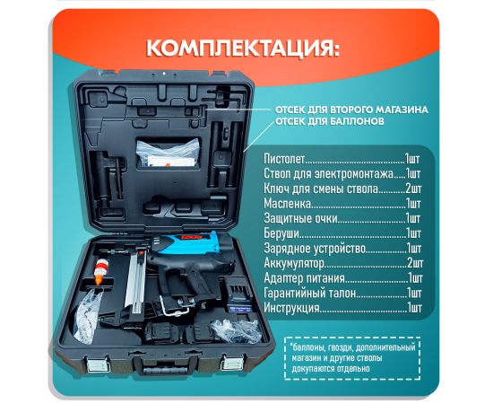 -В комплекте 2 аккумулятора - позволяют забить до 8000 гвоздей без подзарядки от электросети