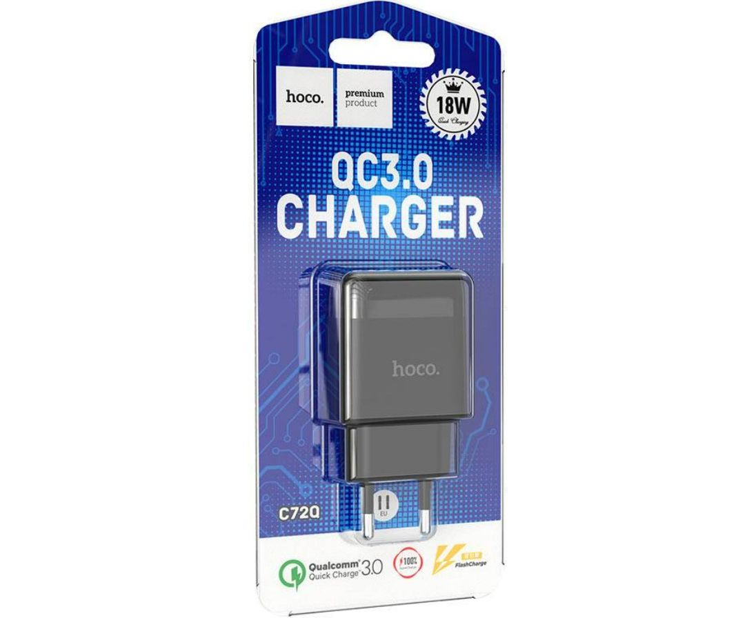 Сетевое зарядное устройство HOCO C72Q/ QC 3.0/ 1 USB/ Выход: 5V_9V_12V, 18W/ Черный