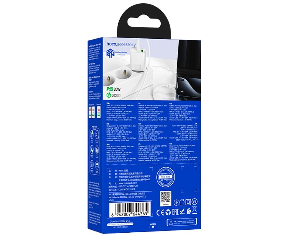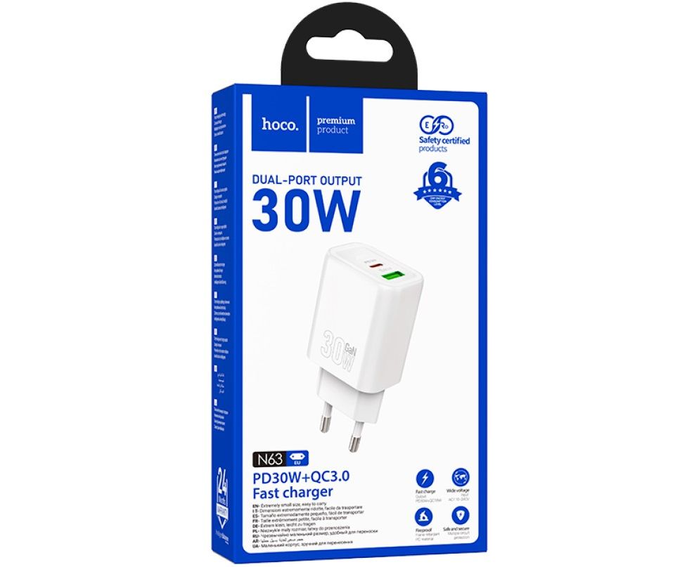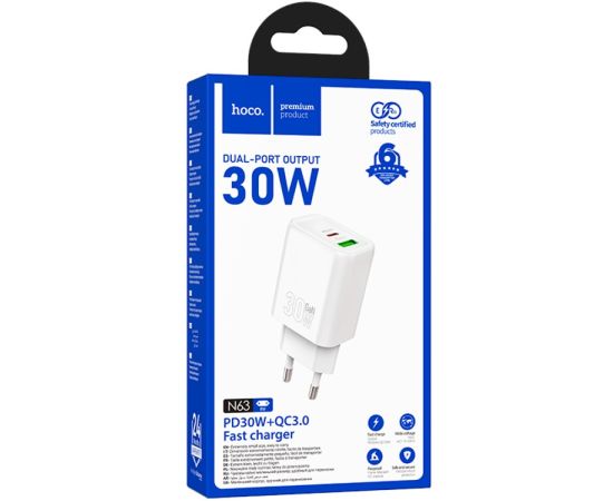 Сетевое зарядное устройство HOCO N63/ PD/ 1 USB/ 30W/ Белый