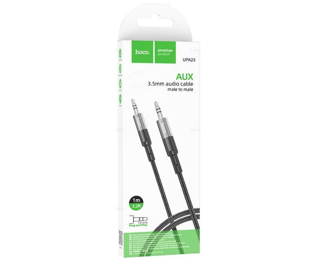 Аудио кабель HOCO UPA23/ AUX 3.5 mm jack - 3.5 mm jack/ 1m/ Нейлон/ Серый металл