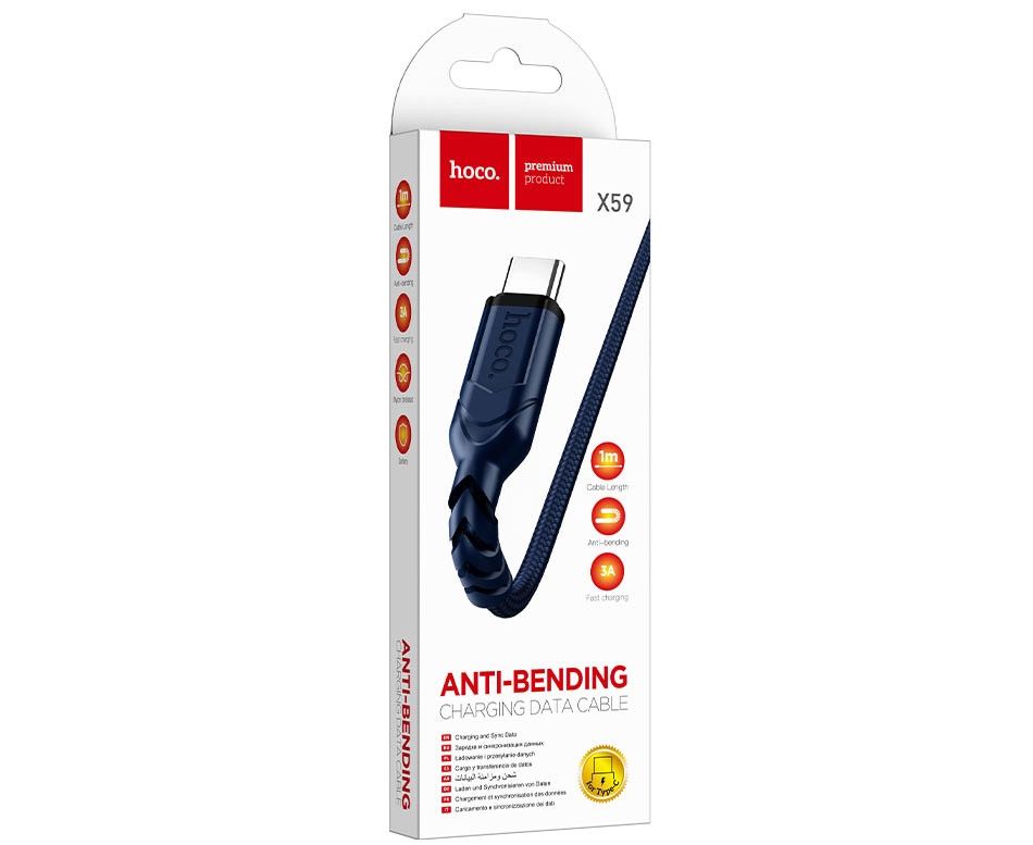Кабель HOCO X59/ USB Type-C/ 1m/ 2.4A/ Нейлон/ Синий