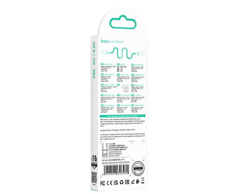 Кабель HOCO X89/ PD Type-C-Type-C/ 2m/ 60W/ Черный, (Арт. HC-46482)