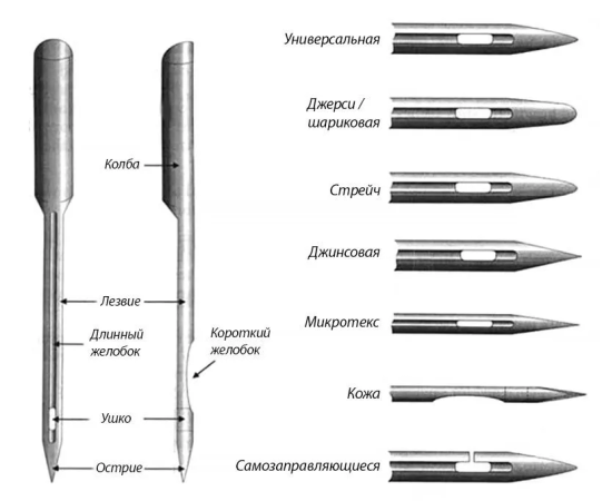 стандартные № 70, 80, 90 – для легких х/б и костюмных тканей.