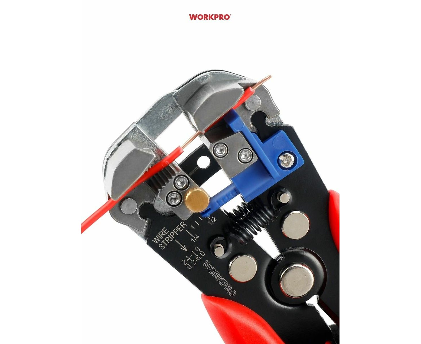 Инструмент для зачистки проводов WORKPRO 3в1 WP291007 имеет саморегулирующийся механизм: провод может быть зачищен путем регулировки точности открытия режущего лезвия, что идеально подходит для медных и алюминиевых кабелей от 10-24 AWG