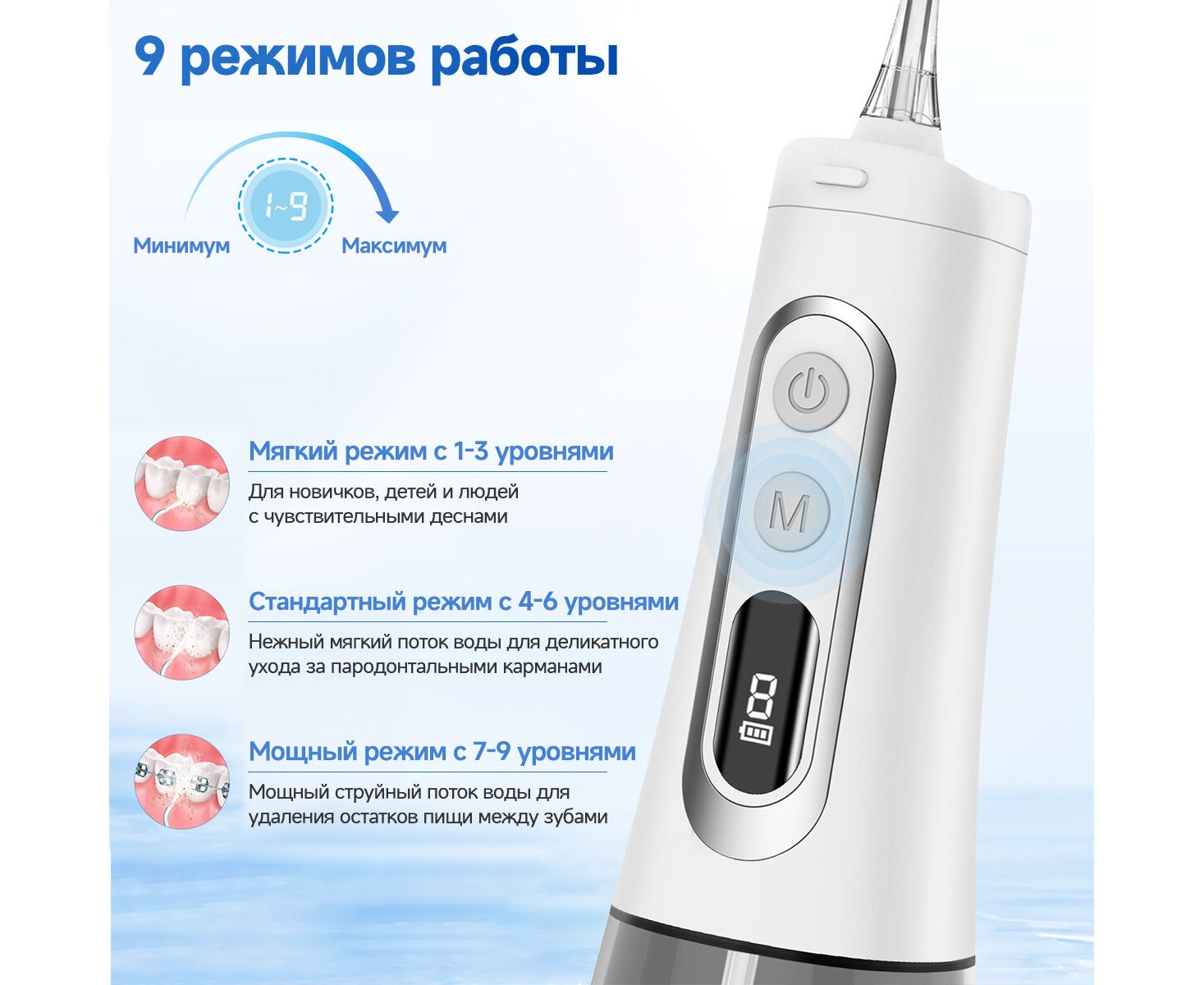 Число режимов/регулировок ирригатора