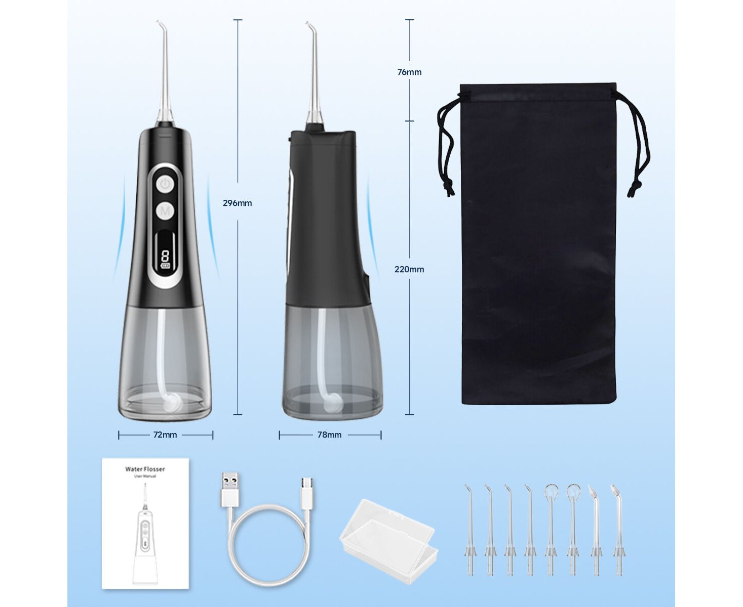 вращение насадки на 360 градусов, контейнер для насадок, питание от USB