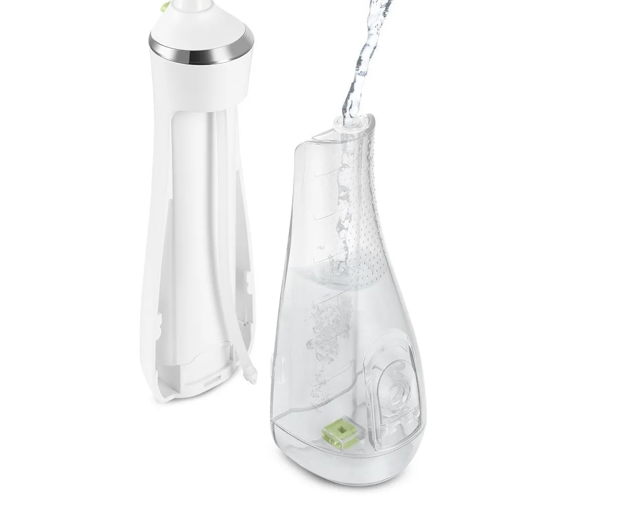 У ирригатора есть съёмный резервуар для воды ёмкостью 220 мл, которого хватает для тщательной обработки полости рта. Прибор автоматически отключается после 2 минут использования.