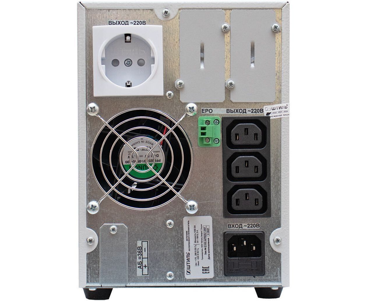 выходные разъемы: IEC-320-C13 (3 шт.), EURO розетка (1 шт.), интерфейсы для мониторинга (опционально): USB, Ethernet, RS-485, программируемые "сухие" контакты