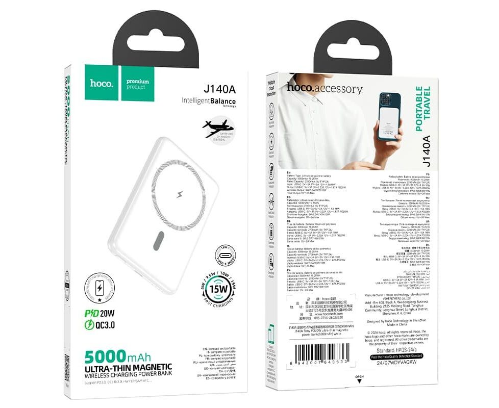 Внешний аккумулятор повербанк Power bank HOCO J140A 5000mAh PD 20W + QC3.0 с беспроводной зарядкой у