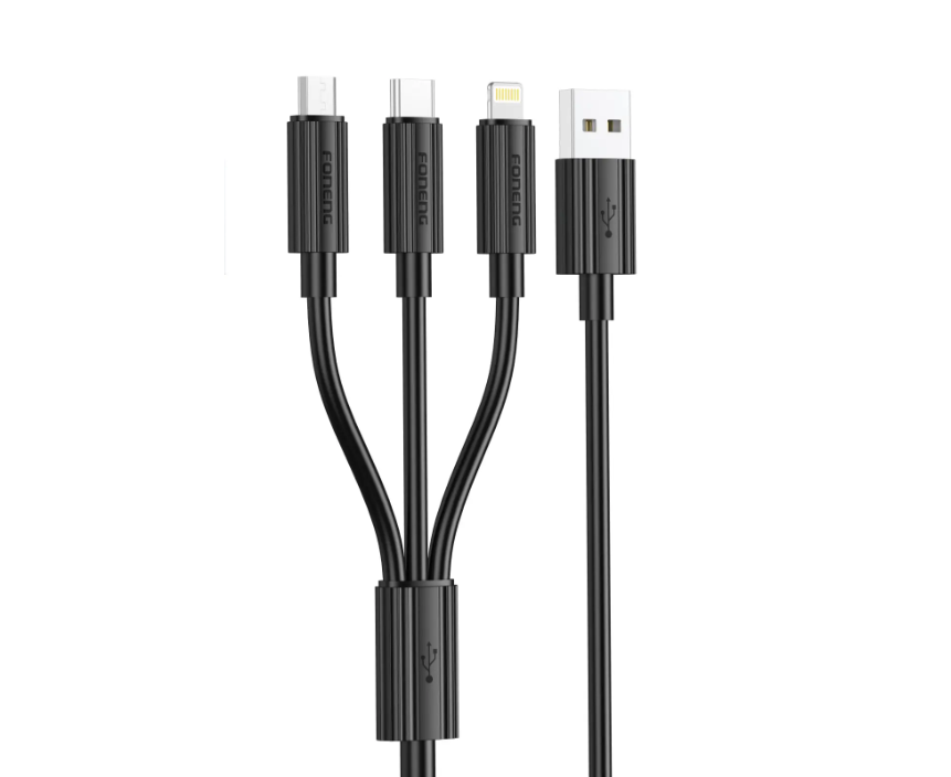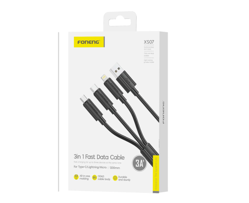 Кабель 3-in-1 Foneng XS07 (USB - MicroUSB+Type-C+Lightning) 1.2M 3A (Black)