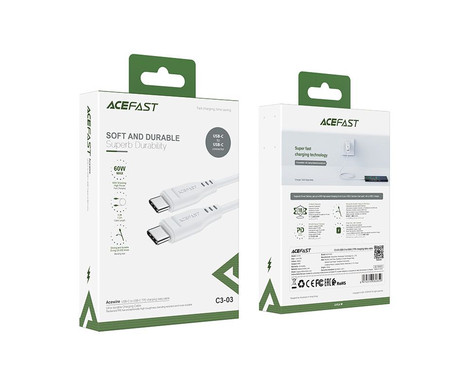 Дата-кабель ACEFAST C3-03 Type-C to Type-C TPE, 1.2m (белый)