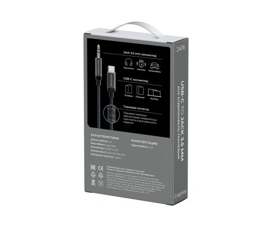 Кабель AUX Breaking Graphite, USB-C - AUX, 1м (Черный)
