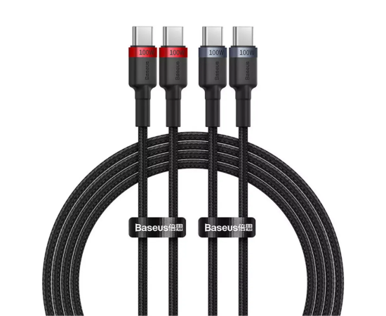 Кабель BASEUS P10318306003-01 Cafule Charging Cable USB-C to USB-C 100W 2m 2pcs Red Black+Grey Black