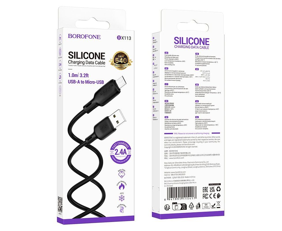 Дата-кабель BOROFONE BX113 Lenny silicone charging data cable Micro(L=1M) (black)