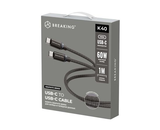 Кабель Breaking Graphite K40, USB-C - USB-C представляет собой аксессуар для зарядки и передачи данных устройств, оснащенных разъемом USB-C.