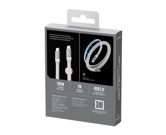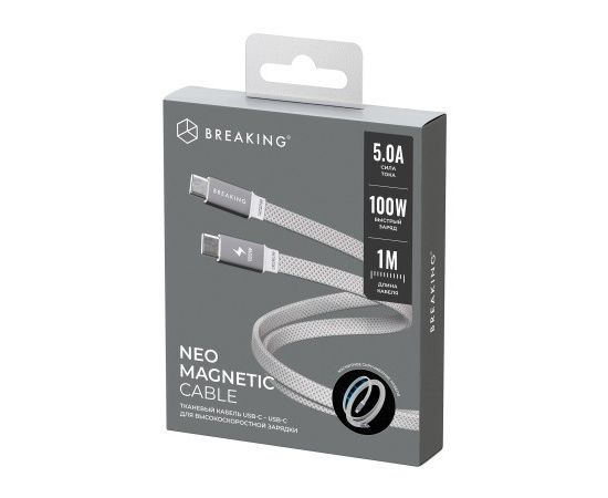 Кабель Breaking Neo Magnetic, USB-C - USB-C, 100W, 5.0А, 1м (Серебристый)