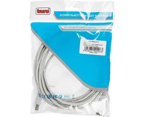Кабель Buro (USB2.0-AM/BM-5M-MG) USB2.0 USB A (m)/USB B (m) 5м феррит.кольца