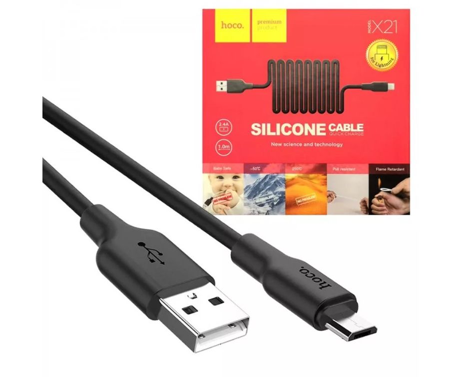 Кабель HOCO X21 USB Silicone Micro чёрный