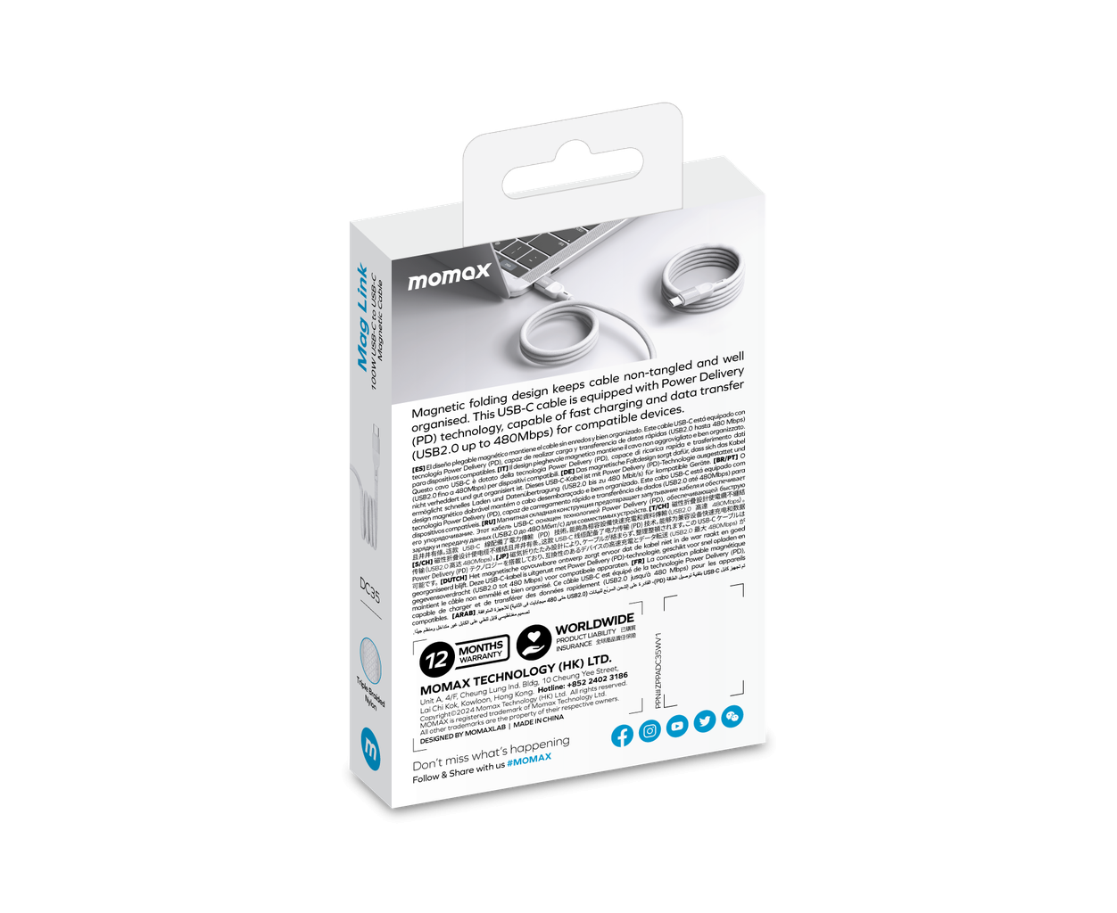 Кабель Momax Mag.Link DC35W USB-C/USB-C 1м White