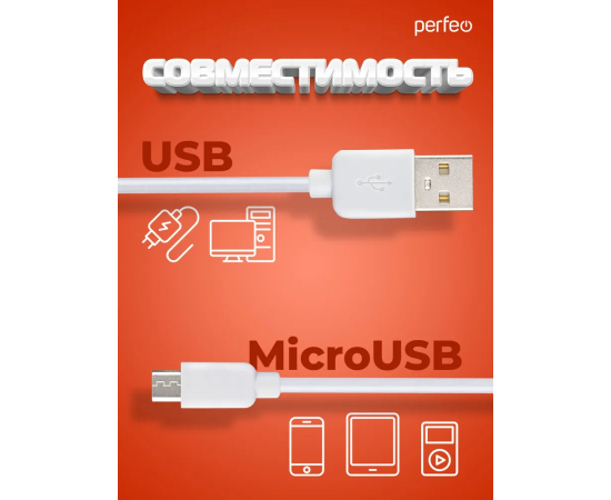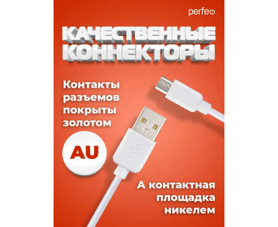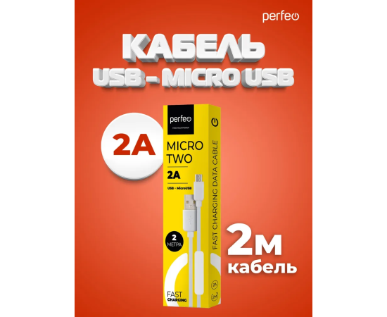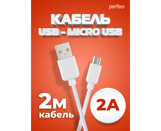Кабель PERFEO U4011 USB2.0 A вилка - Micro USB вилка, белый, длина 2м, бокс