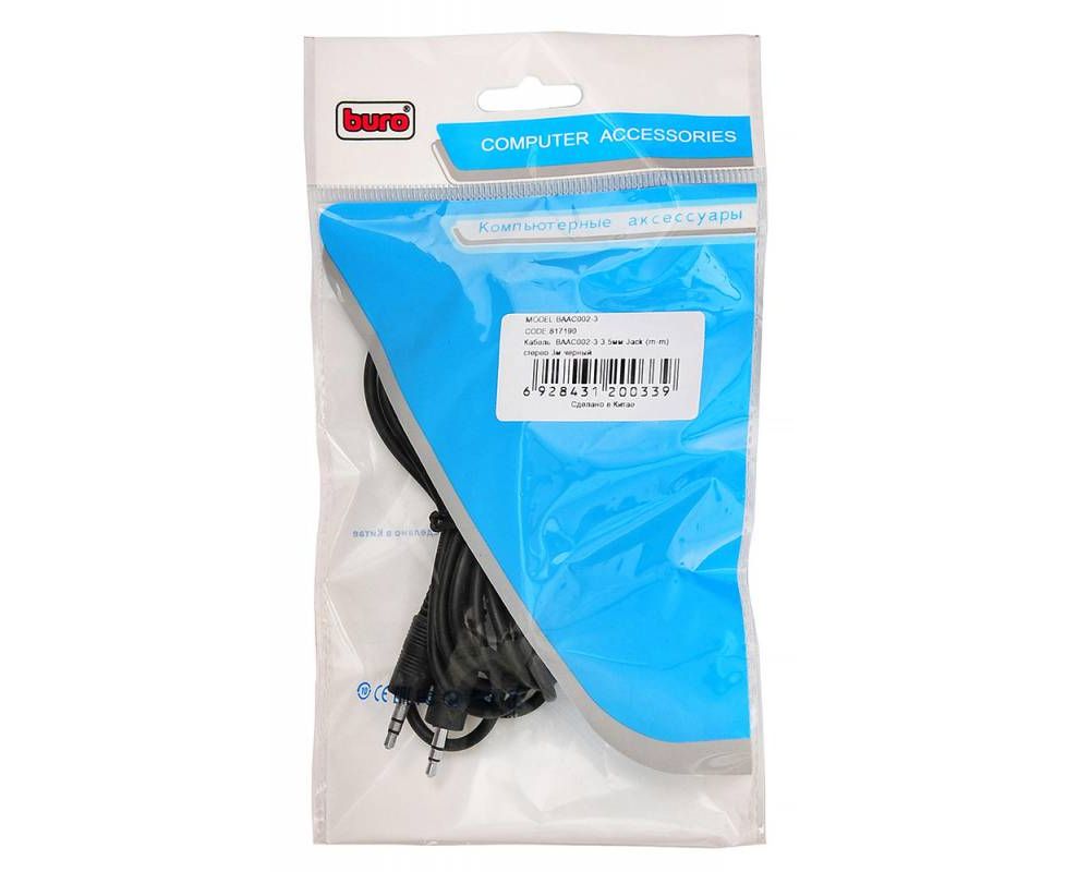 Кабель соединительный аудио Buro BAAC002-3 Jack 3.5 (m)/Jack 3.5 (m) 3м. черный