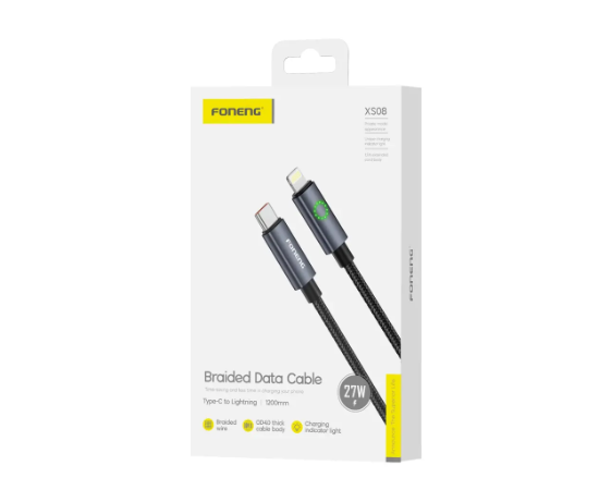 Кабель Type-C to Lightning Foneng XS08 1.2M, 60W, нейлон (Black)