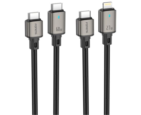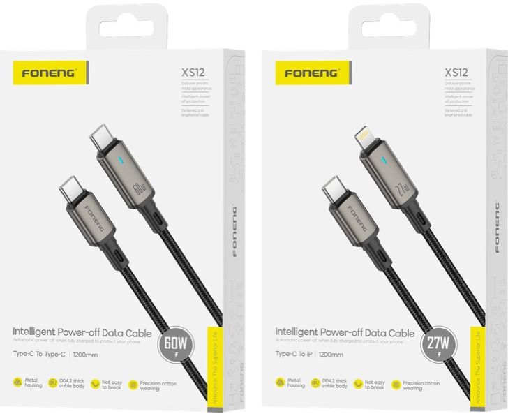 Кабель Type-C to Type-C Foneng XS12 1.2M, 60W с автоматическим отключением (Black)