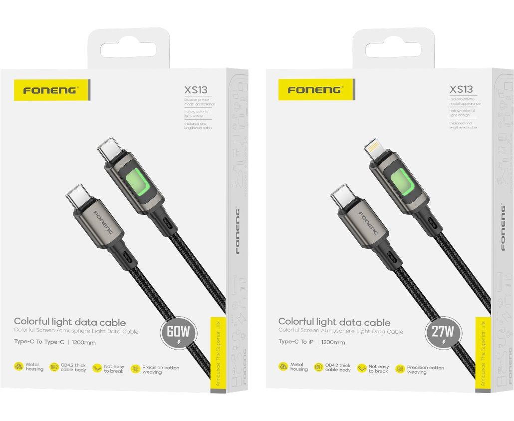 Кабель Type-C to Type-C Foneng XS13 1.2M, 60W (Black)