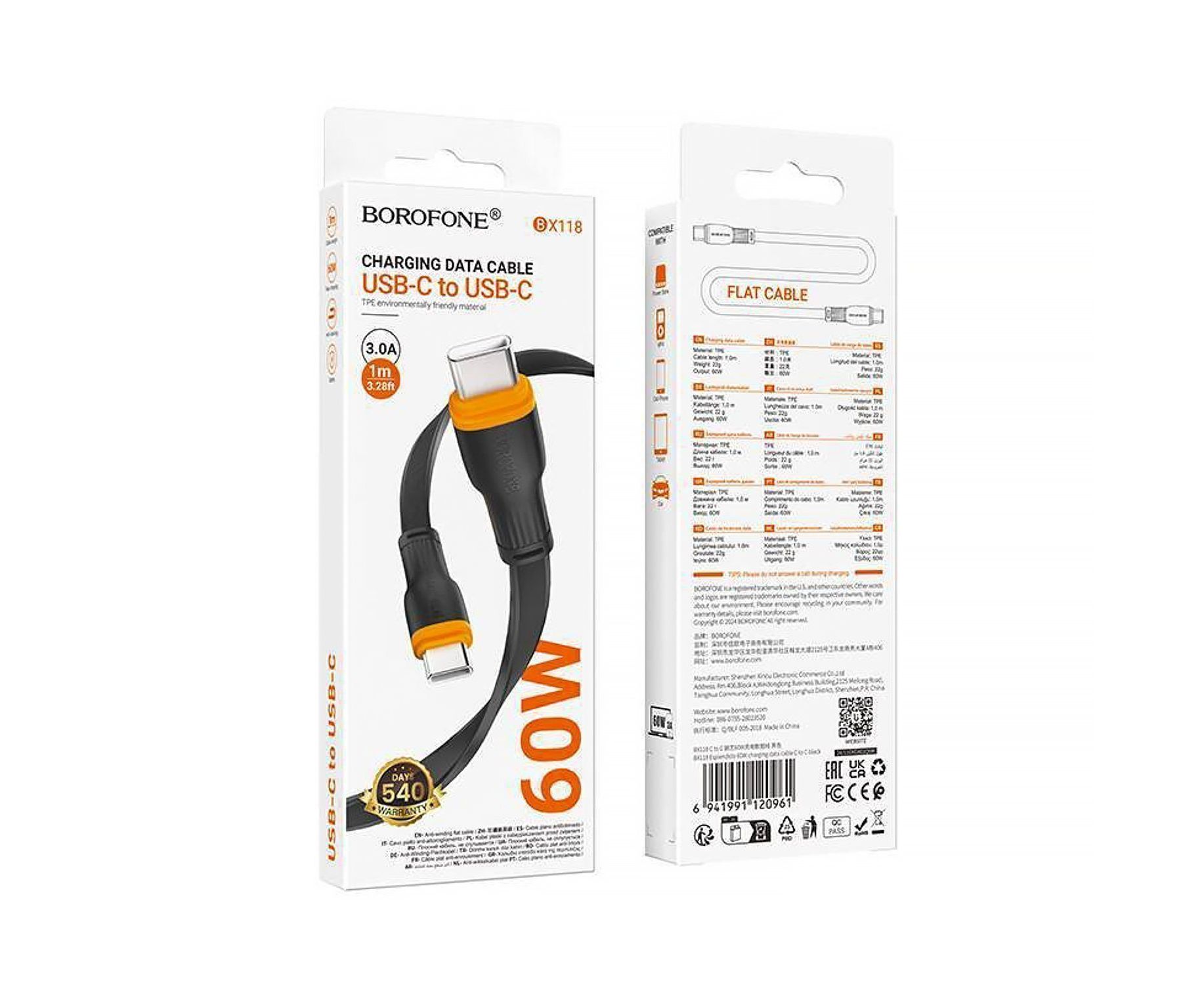 Кабель Type-C - Type-C Borofone BX118 Esplendido PD 60W 100см 3A (black) (240338)