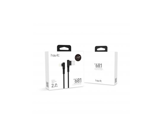 Кабель угловой lightning HAVIT HV-H681 2.0A 1.0 m. Черный