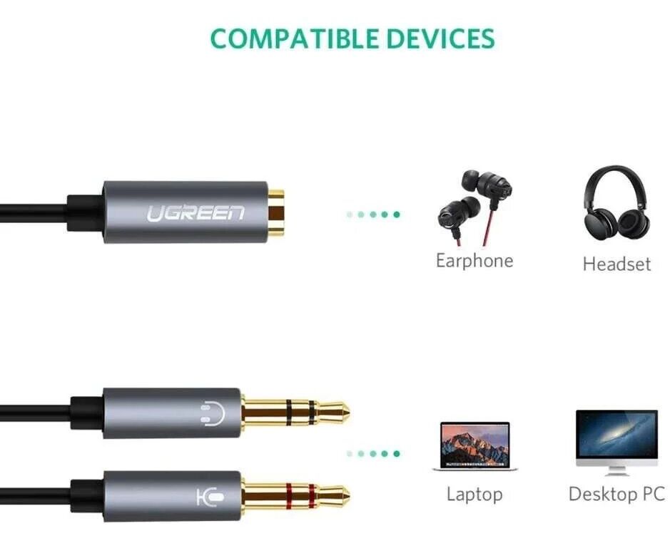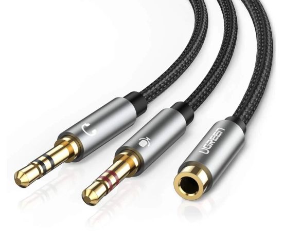 Кабель UGREEN AV140 20899 Dual 3.5mm Male To 3.5mm Female Audio Cable Aluminum Case Black