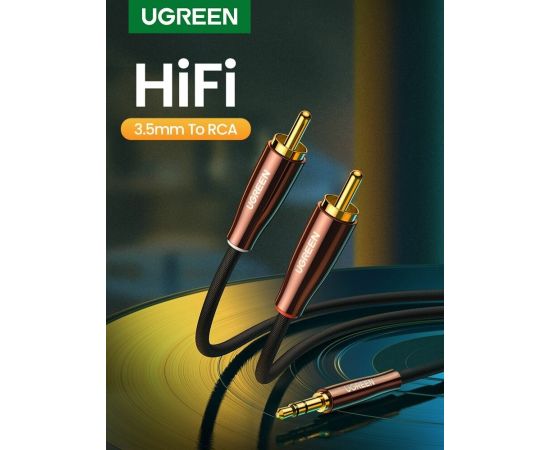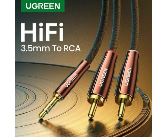 Кабель UGREEN AV170 80847 3.5mm Male to 2*RCA Copper Case Braided Aux Cable 2m Black/Dark Copper