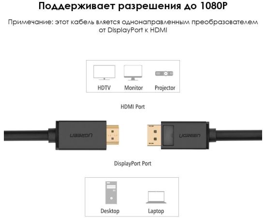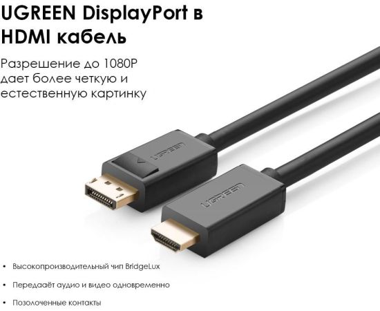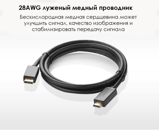 Кабель UGREEN DP101 10203 DP Male to HDMI Male Cable 3m Black