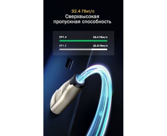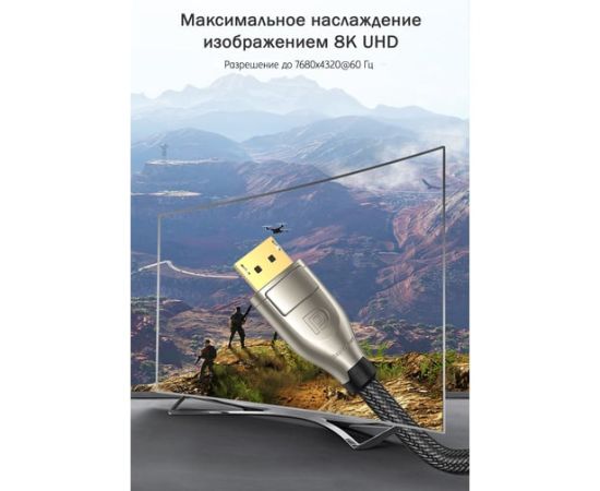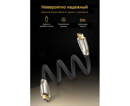 Кабель UGREEN DP112 60844 1.4 DP M/M Round Cable Zinc Alloy Shell with Braided 3m Black