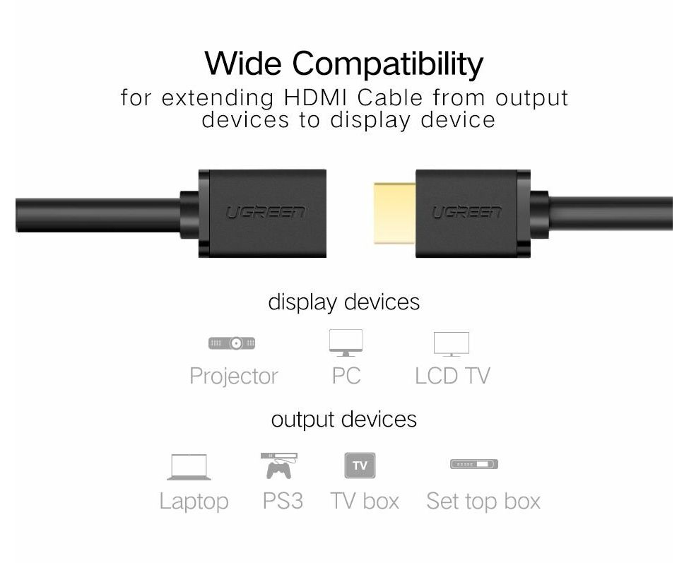 Кабель UGREEN HD107 (10145) HDMI Male to Female Cable 3m. Black