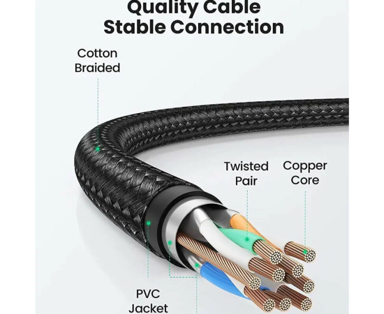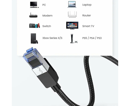 Кабель UGREEN NW153 80433 Cat8 F/FTP Pure Copper Ethernet Cable Round Braided OD5.5mm 5m Black