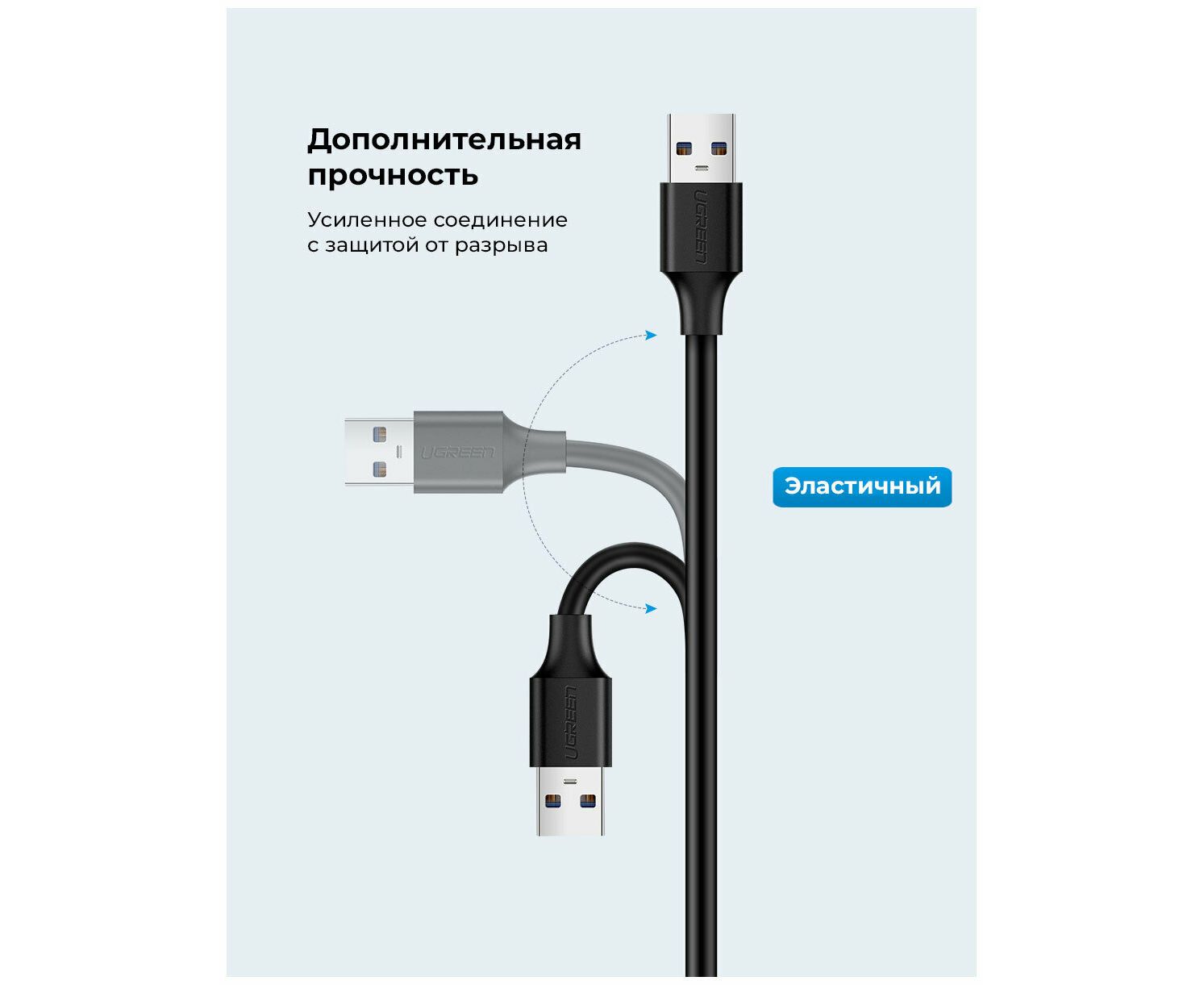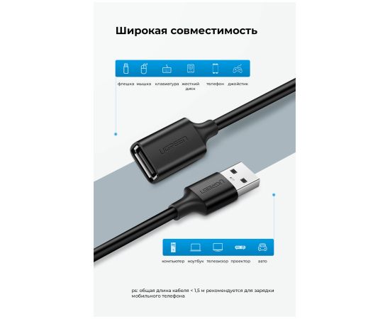 Кабель UGREEN US103 10318 USB 2.0 A Male to A Female Cable 5m Black