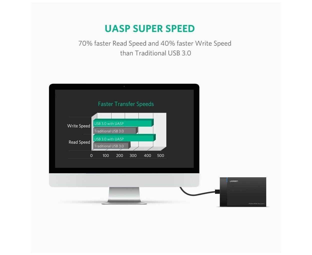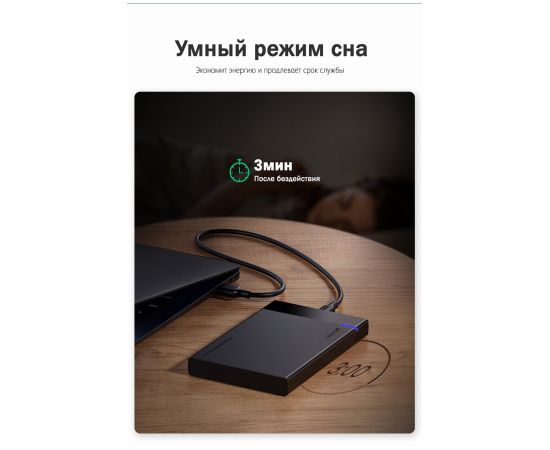 Внешний корпус для HDD UGREEN US221 30848 2.5 Inch Hard Drive Box with Micro-B to USB-A 3.0 Cable Black