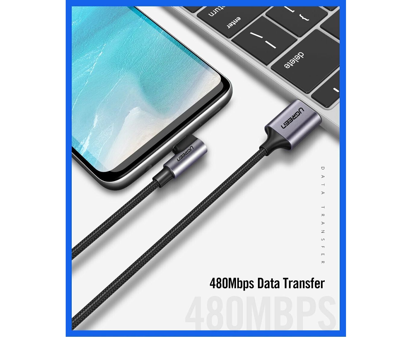 Кабель UGREEN US284 70255 Angled USB-C Male To USB2.0 A Male 3A Data Cable 90°Angle 3m Black