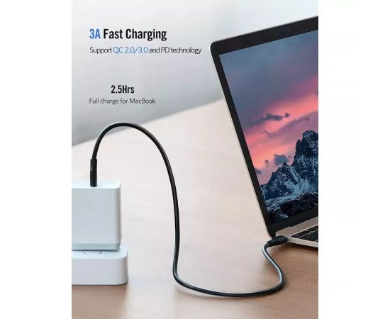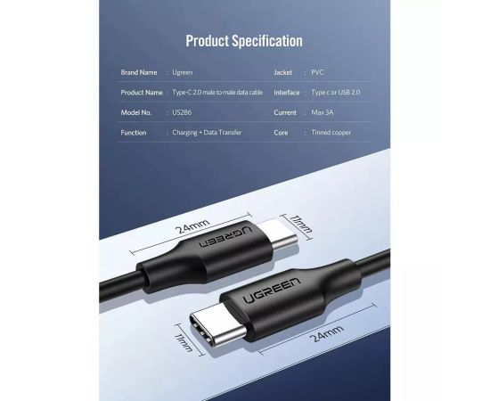 Кабель UGREEN US286 50996 USB-C 2.0 Male To USB-C 2.0 Male 3A Data Cable 0.5m Black