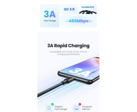Кабель UGREEN US287 60118 USB-A 2.0 to USB-C Cable Nickel Plating 2m Black